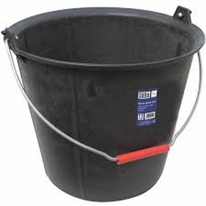seau de maçon en caoutchouc 13 litres, diam anse 6,3mm, graduation et bords renforcés